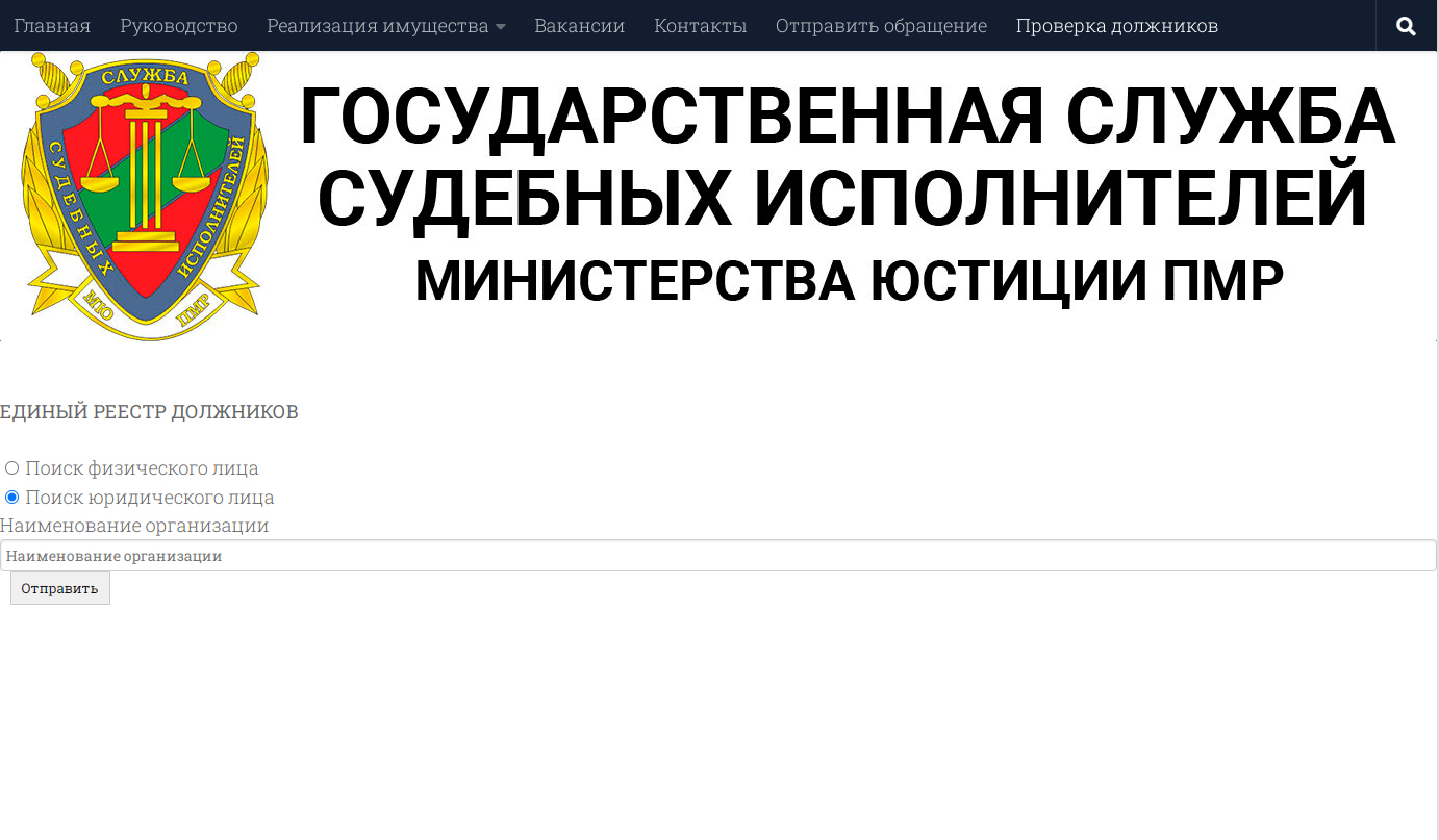 На официальном сайте Государственной службы судебных исполнителей Министерства юстиции Приднестровской Молдавской Республики в открытом доступе появится база должников