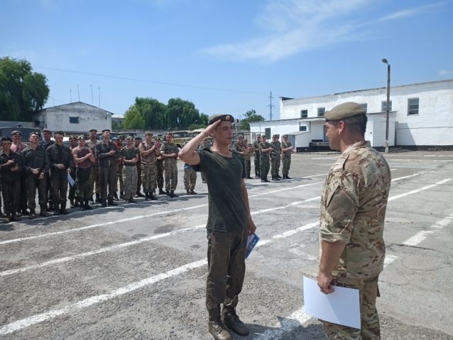 С напутственными словами в адрес обладателей оливковых беретов выступил ВрИД командира Конвойного батальона ВВ МЮ ПМР майор Саранча Е.В., который выразил слова благодарности за проявленное мужество и стойкость, а также надежду, что они с достоинством и честью будут носить оливковый берет, проходя службу в Конвойном батальоне ВВ МЮ ПМР.