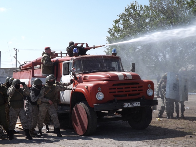 Группы наблюдения и снайперов занимают свои позиции. В ходе учений силы сводного отряда продемонстрировали различные тактические построения, взятые из международного опыта. Для преодоления преград, созданных осужденными, на пути движения сводного отряда используется бронетехника. Для тушения очагов возгорания, а также для разгона осужденных в боевом расчете присутствует пожарная машина. После рассечения и локализации осужденных в тесном взаимодействии работают группы изъятия и конвоирования. Самых агрессивных участников беспорядков изымают и конвоируют в специальный транспорт.