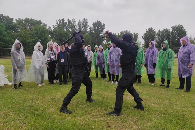 Сотрудники отряда спецназначения продемонстрировали приемы рукопашного боя с резиновой палкой, холодным оружием и элементы психофизической подготовки «Волна». После выступления участникам военно-спортивной игры предоставили возможность пообщаться с бойцами, задать им вопросы о службе в подразделении специального назначения.