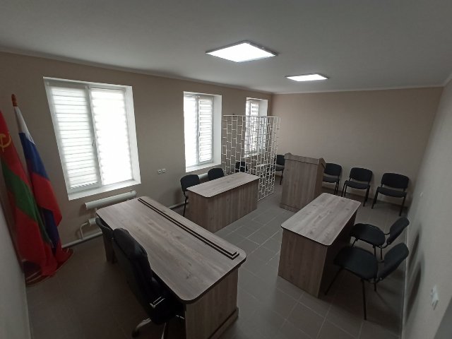 В Тюрьме-1 ГСИН МЮ ПМР оборудовали зал судебных заседаний. В помещении, где будут проходить выездные судебные заседания, после проведенного капитального ремонта, оборудованы необходимой мебелью специальные места для состава суда, места для размещения участников процесса и иных лиц, присутствующих в зале судебных заседаний. Также имеется совещательная комната.